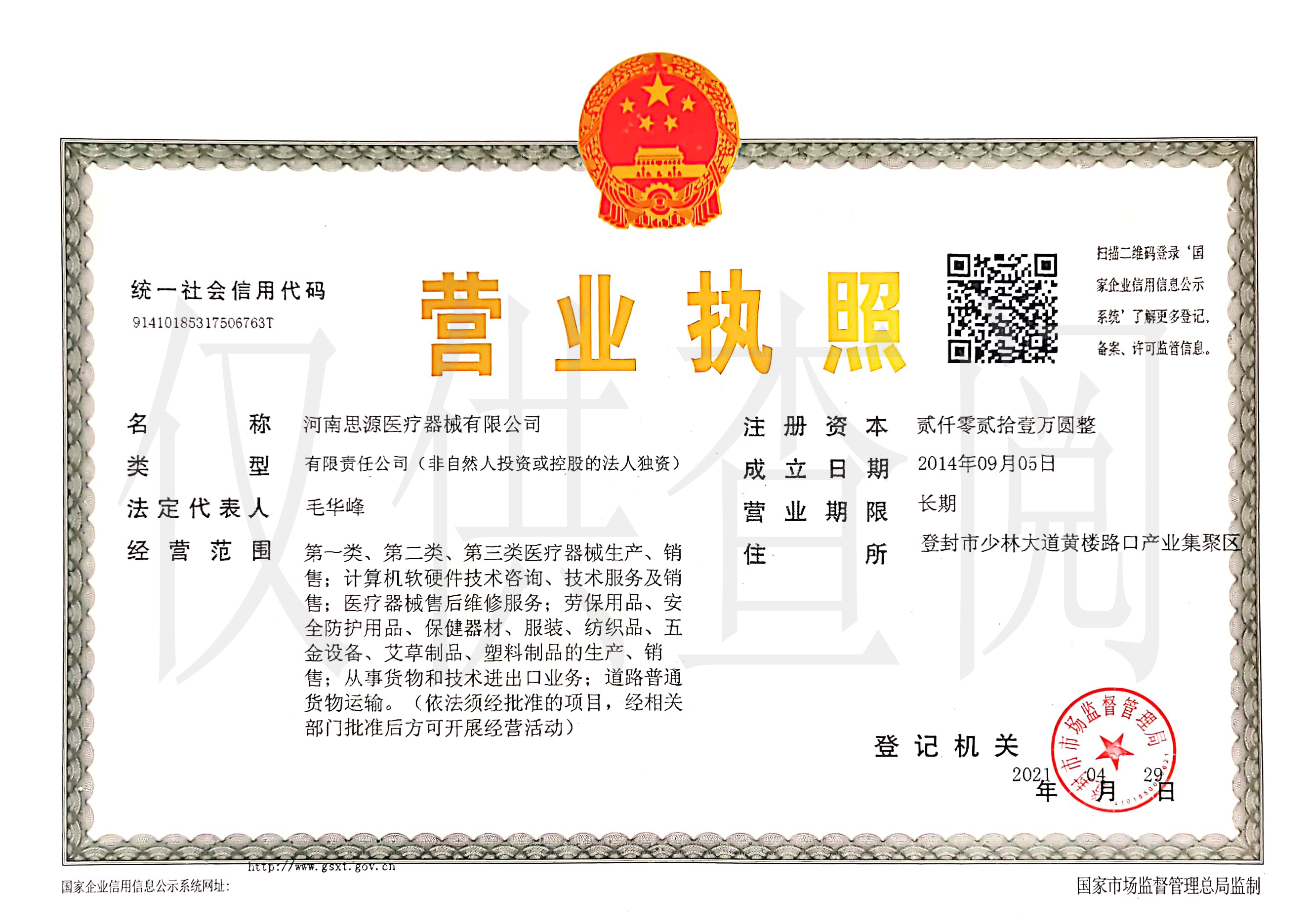 河南思源醫(yī)療器械有限公司成立于2014年11月,注冊資金2021萬元。公司始終發(fā)心為人,經(jīng)過十幾年的風風雨雨,不斷成長,成為醫(yī)療器械生產(chǎn)、批發(fā)、零售企業(yè),是河南省醫(yī)療器械商會會員和中國醫(yī)療器械行業(yè)協(xié)會會員。